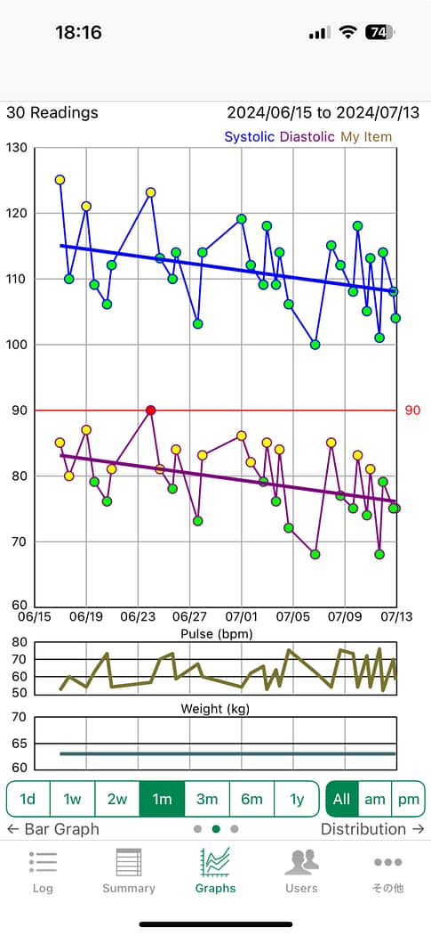 っで、単身赴任中から血圧測定データをを