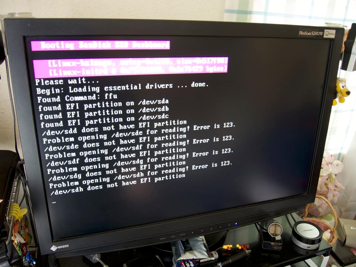 LinuxっぽいCUI画面が立ち上がり、ディスクをスキャンしはじめたが