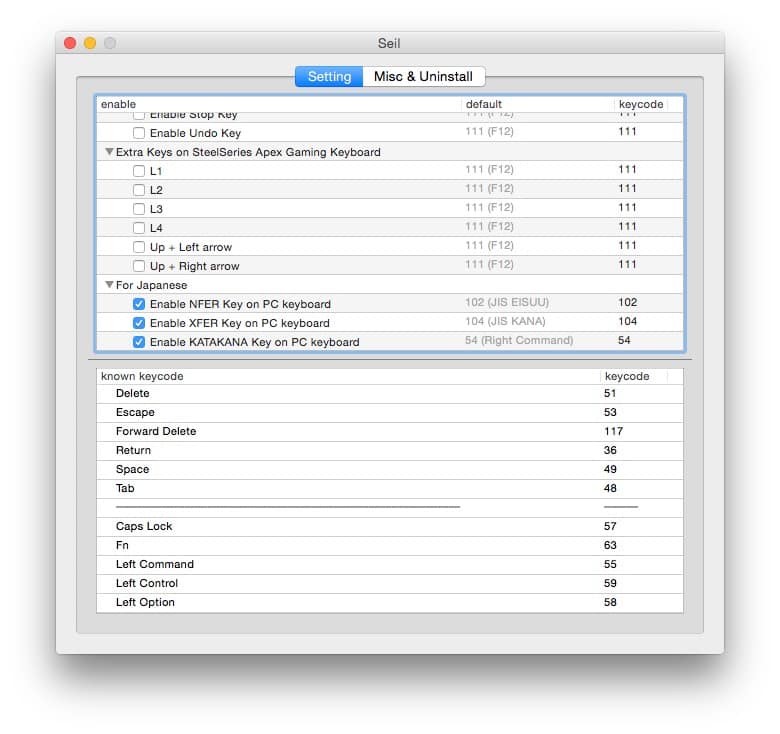 ということをやれば操作感がMac用キーボードとほぼ同じになる
