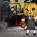 なので、お屋敷玄関への石畳の両脇にカボチャランプを