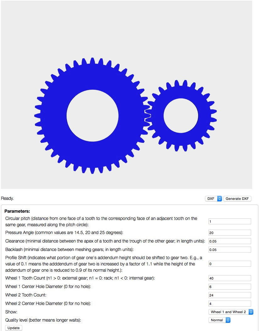 DXFでインボリュート歯形の歯車形状を2DのDXFで作ってくれます。
