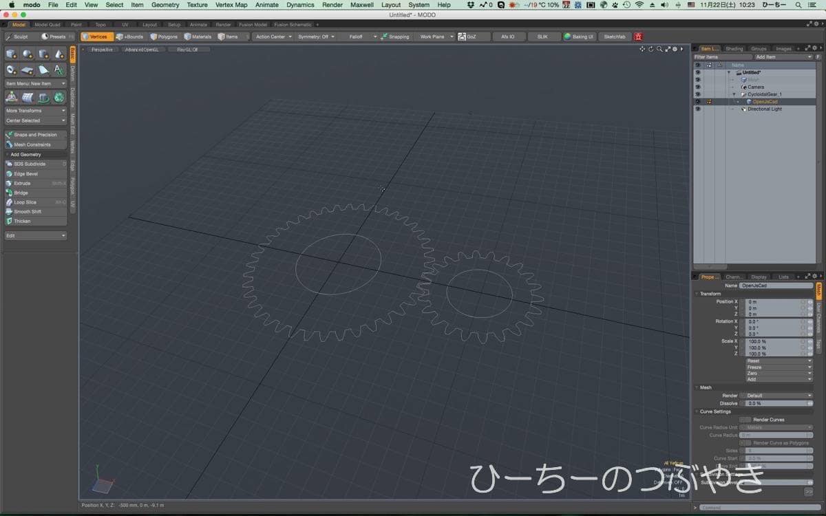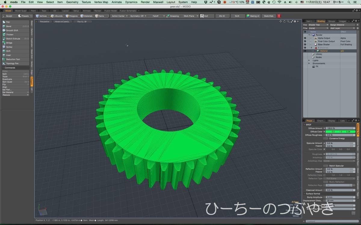 modoのプロシージャルアイテムのギアはメッシュに変換できないし、部品をモデリングする感覚というより、やはりCG的な見た目優先なので意外とありかもしれませんね。