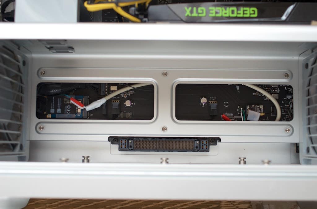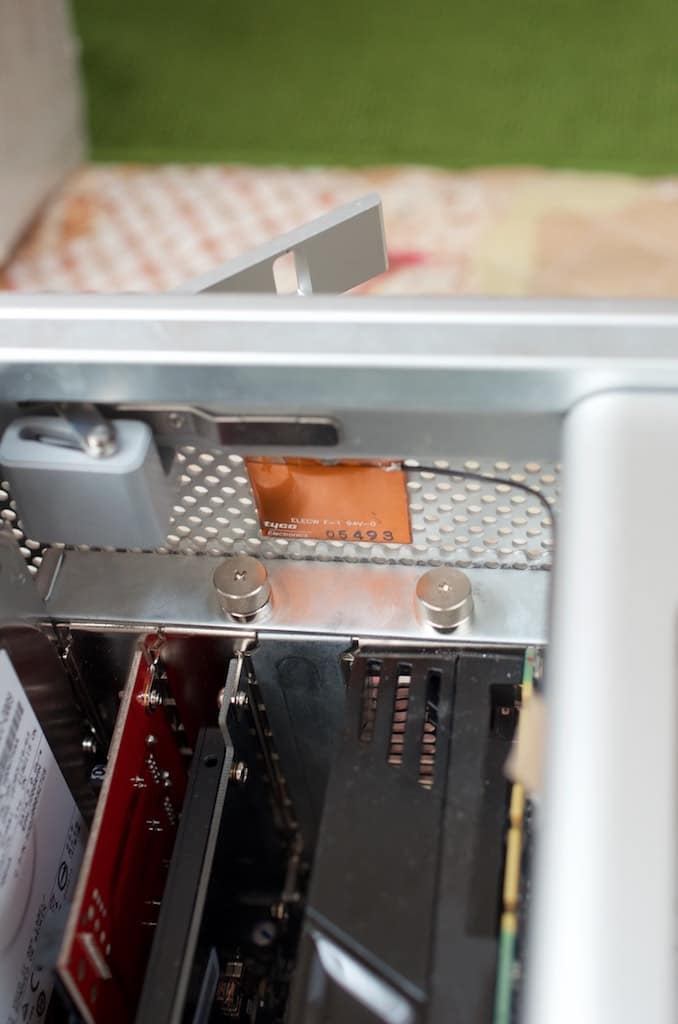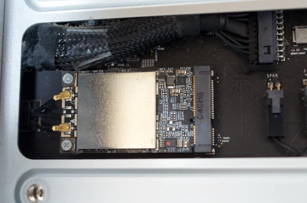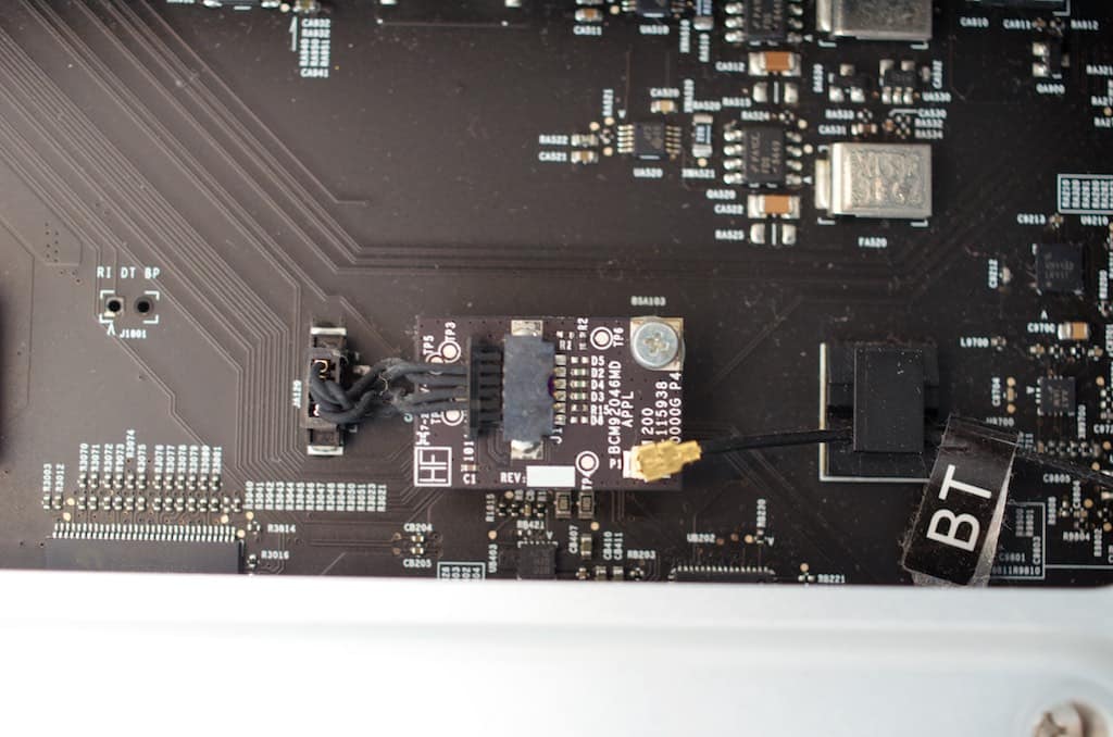 CPUボードを抜き取ってMacProを横倒しにして既存のBluetoothカードからケーブルを