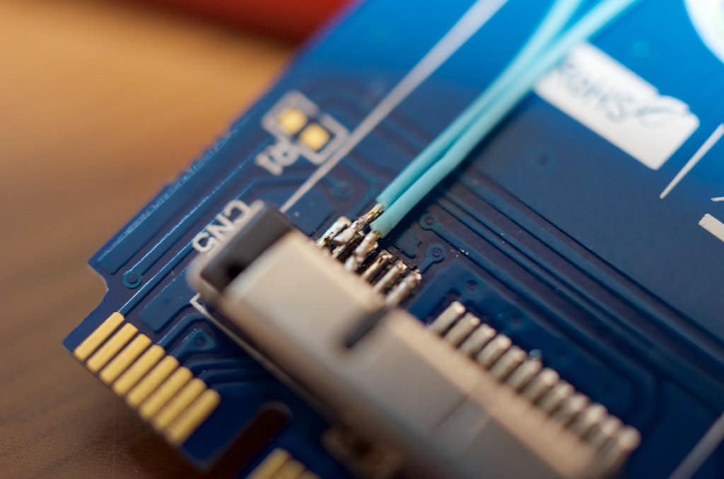 USBの信号を抜き出すためのケーブルをアダプターカードにつける必要があるために