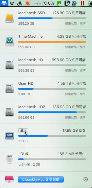 このアプリはメニューバーに小さいアイコン状態で常駐させる事ができFacebookを