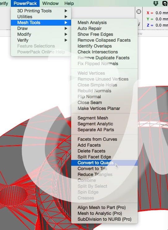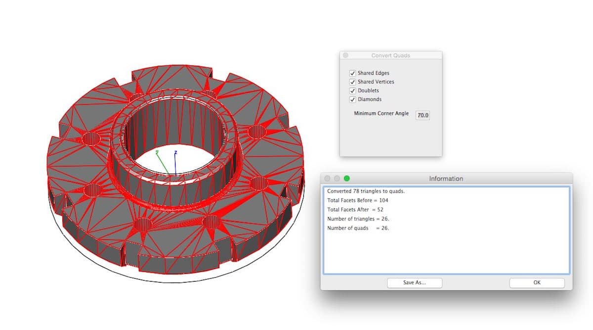 ただ、ソリッドデータを4角ポリゴンに完全に変換できるわけではないので
