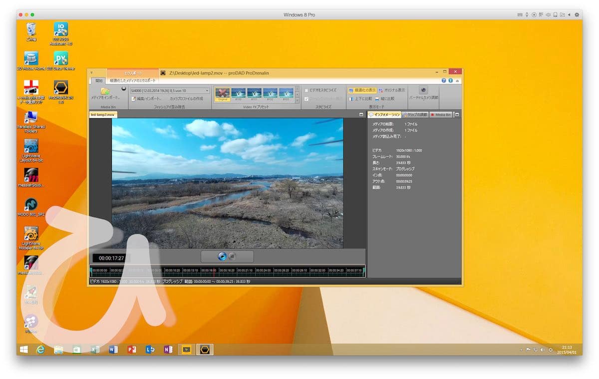 それと、僕はproDAD ProDRENALIN V1をParallels Desktop 10 for Macの上でWindows8.1Proを動かせて使ってるんだけど快適!!