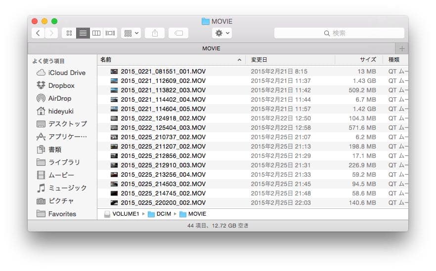 実際には、MacでマイクロSDカードの閲覧をするとこんな感じで問題なし。