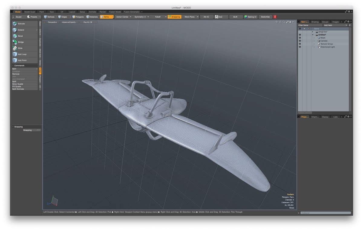 まず、MODOでモデリングしていたメーヴェをMesh Fusionで全部足し算して