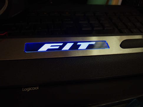 フィットハイブリッド用に購入したLEDスカッフプレート点灯確認。