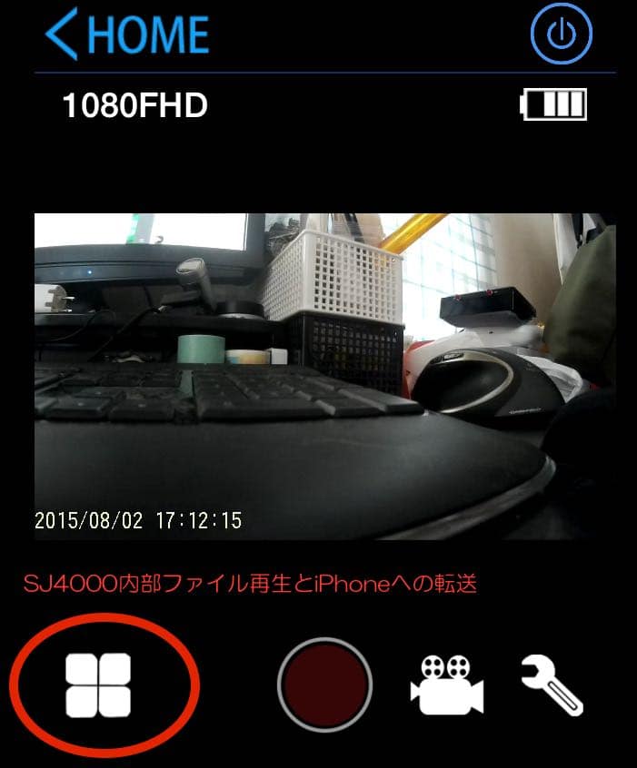 上の図の赤丸アイコンを選ぶとSJ4000WiFi内の撮影した動画再生やスマホへの