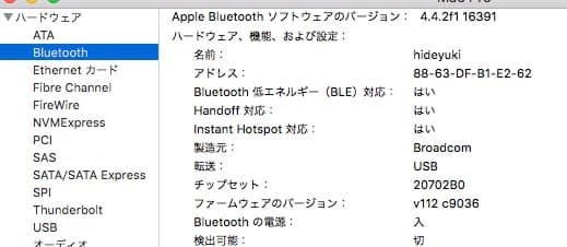 搭載しているBluetoothカードはBCM94360CDでApple純正なので問題無く動作している。