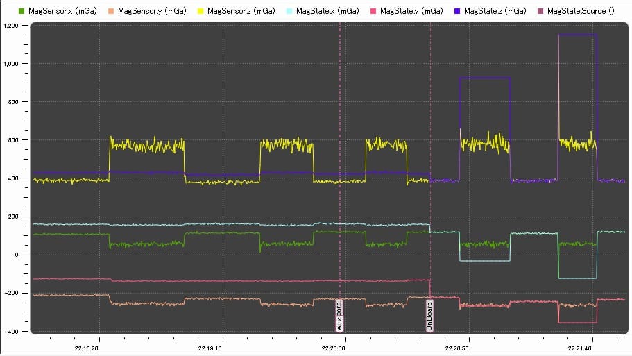 フル回転させても外部電子コンパスではオレンジや赤色点灯のNG状態にはならなくなった。