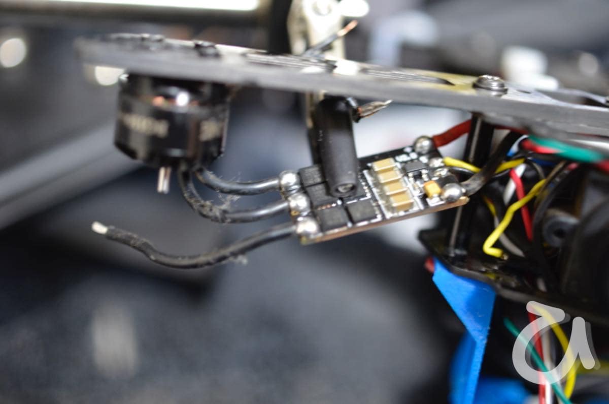 ナイロン結束バンドで固定していたが、これをモーターのケーブルをESCに直結する事で