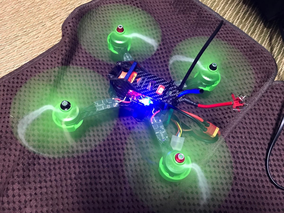 モーターもモーターガードもプロペラも緑色なのでアマガエル号と呼んでいる。