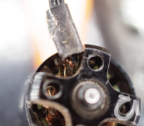 原因は、モーターの固定ネジ用タップ穴位置に3相のコイルを束ねてハンダ付けして保護チューブで