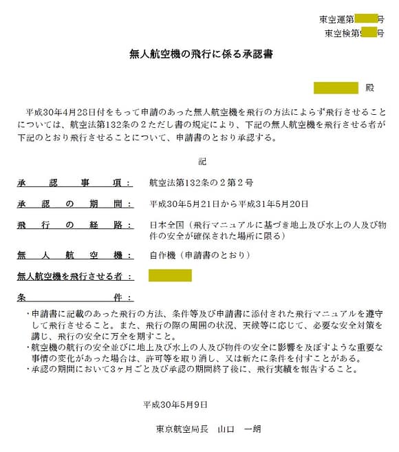 5/10に空撮で日本全国で申請が通り書類のPDFを入手できた。