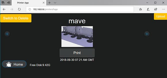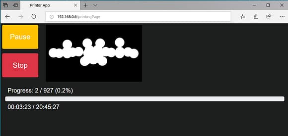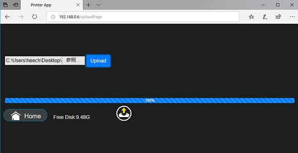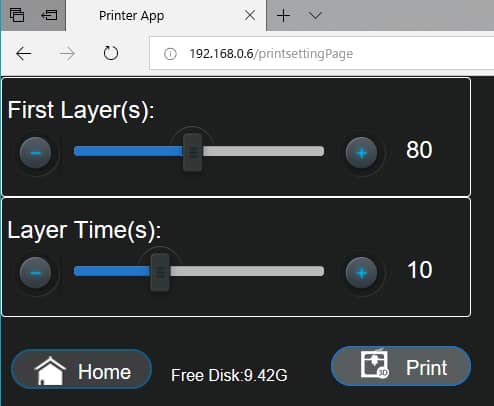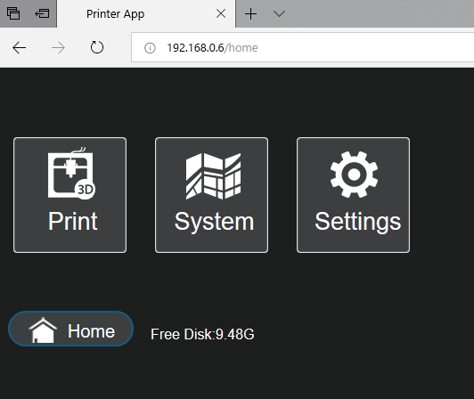 WiFiでの操作はCreality 3D LD-001のIPアドレスをWebブラウザ上で打ち込むと操作パネルと同じ画面が