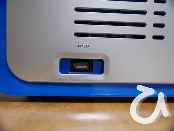 ここにUSBメモリーを差し込み内部メモリーに造形データを転送する。