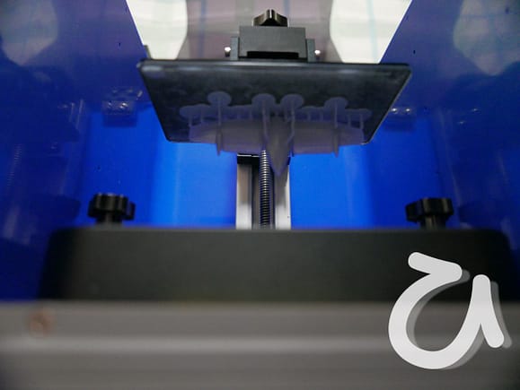 レジンを注ぎ込む容器を外して造形するプレートのゼロ高さ調整をした。