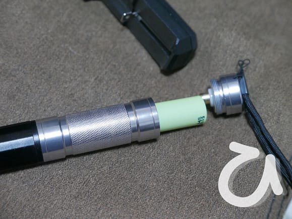 電池は懐中電灯のようにお尻から挿入して蓋をする方式。そしてお尻のボタンでON/OFF。