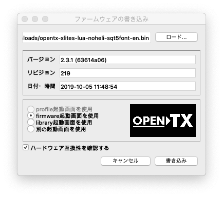 バージョン2.3.1のOpenTXコンパニオンを起動すると新しいファームウェアがあるけどダウンロードする?