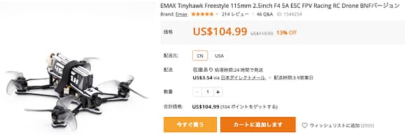 僕も気になっていて、現在到着待ちの75mmWhoop機EMAX Tinyhawk II 75mm 1-2Sがクーポン割引。