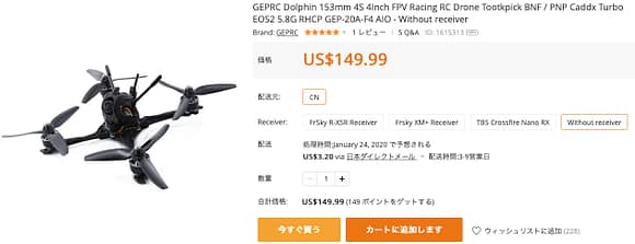 U199な4インチFPVレース機なGEPRC Dolphin 153mm 4S 4Inchもクーポン割引中。