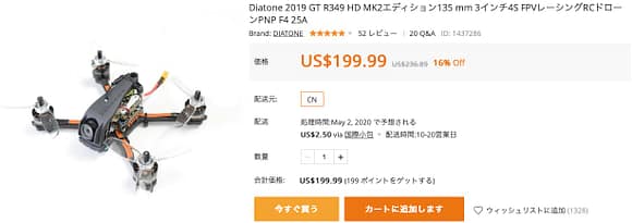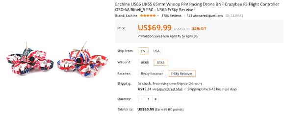 これも定番の安価なWhoop機Eachine US65 UK65 65mm。