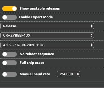内蔵受信器機能を使わないのでCrazyBeeF4DXファームウェアに書き換える。