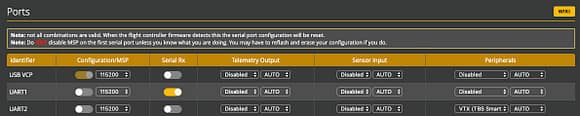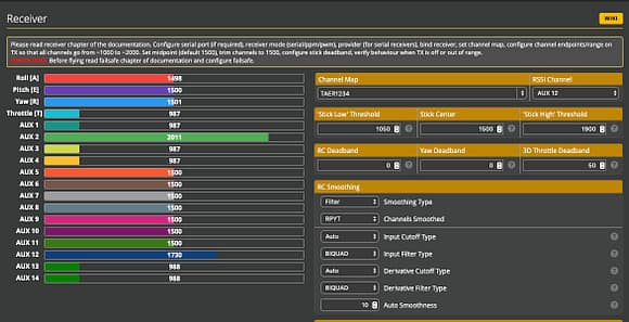 キャノピーを取り付けて機体の再組み立てが終わったらBetaflight configureで設定する。
