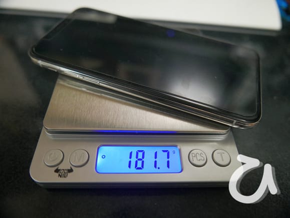 保護シート貼った状態でiPhone XとiPhone 12 Proの重量を測定すると15gの差。