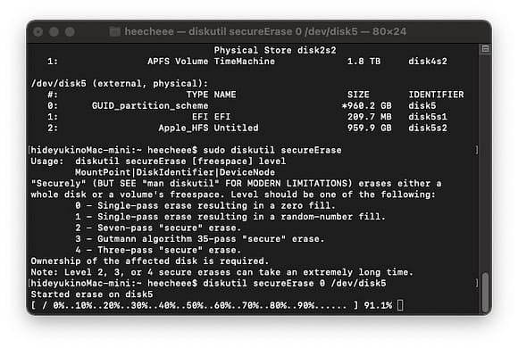 何か効果があるかもしれないのでボリューム全部をゼロで埋め尽くすSecure Eraseをやった。