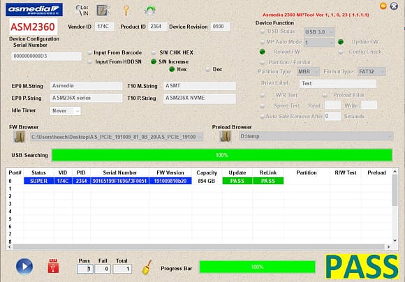 ためしにNVMeからUSB変換チップのファームウェアをさらに上げてみた。