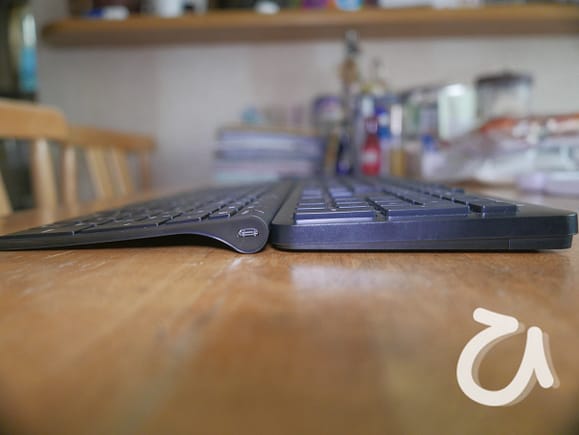 Microsoft Bluetoothキーボードと比較しても薄さがわかる。