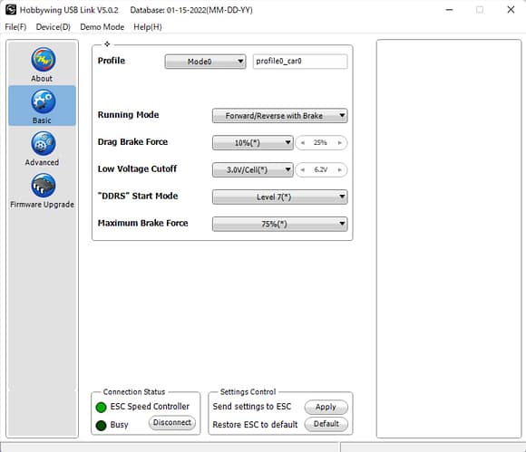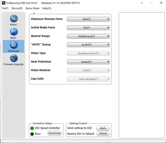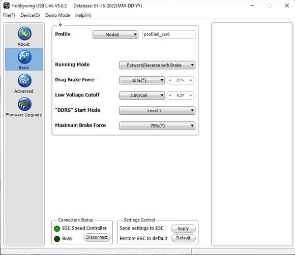 Windows環境からESCのファームウェアアップデートや設定の変更が出来る。