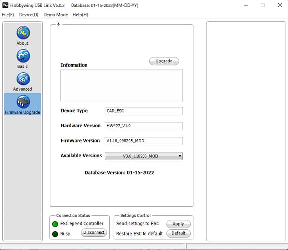 HobbywingとコンパチらしいのでファームウェアはHobbywingのものが使えるとのこと。