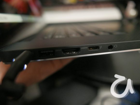 電源プラグとUSB-AコネクタとHDMIそしてUSB-Cコネクターとヘッドホンジャック。