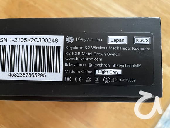 てなわけで、Keychron K2 Ver2(アルミフレーム、RGBバックライト)キー配列は旧タイプ。