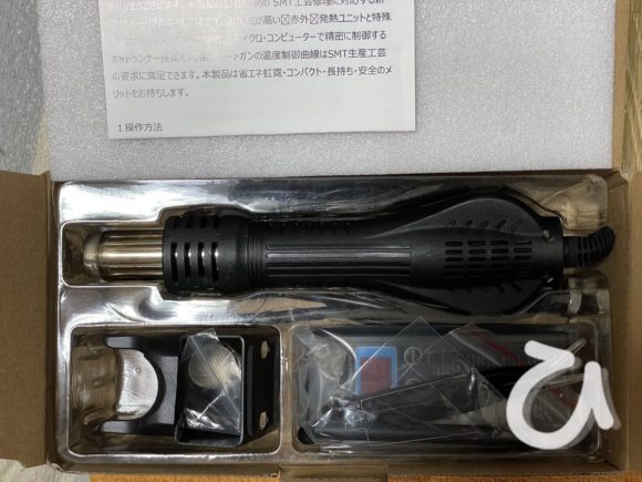 操作部にヒートガン本体を載せるタイプだと場所の制約が多くて狭い机じゃ使いづらい。