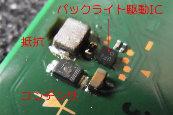 だが、焼損して動作していないダイオードと損傷の可能性があるバックライト駆動ICを