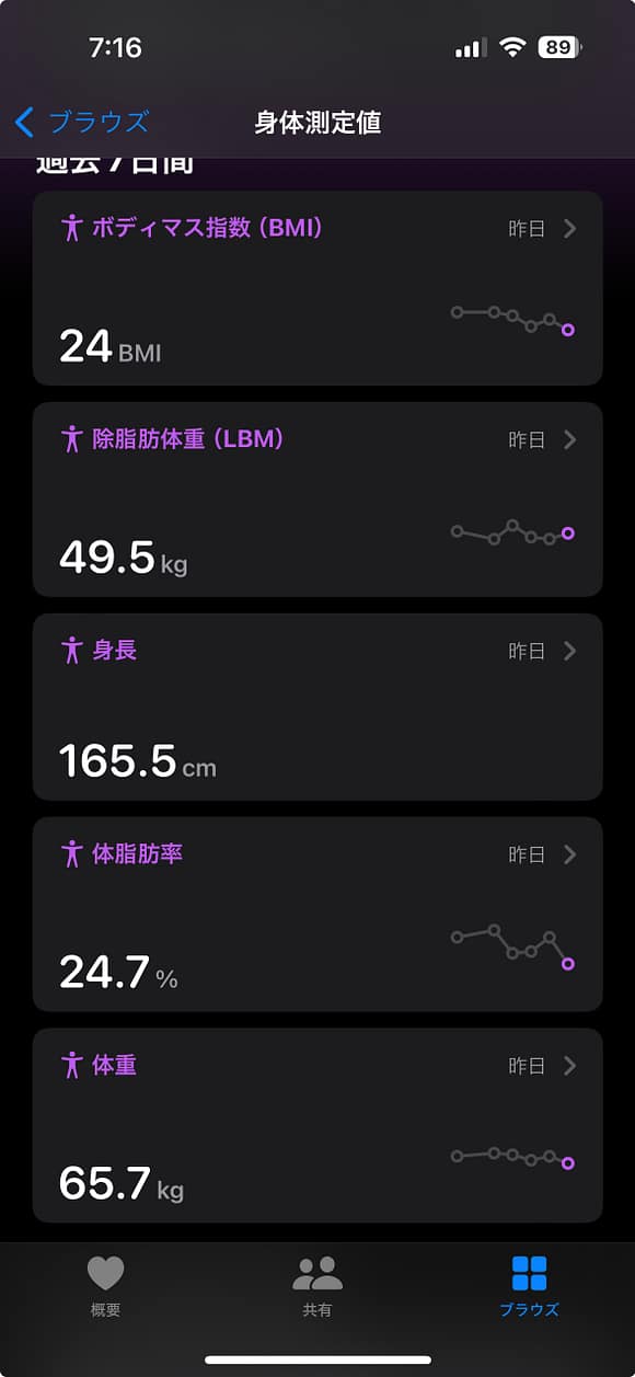 iOSアプリのヘルスセンターで確認するとこんな感じ。