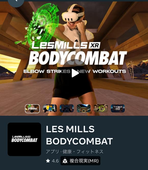使っているVRフィットネスアプリはLES MILLS BODYCOMBATとい買い切りアプリ。