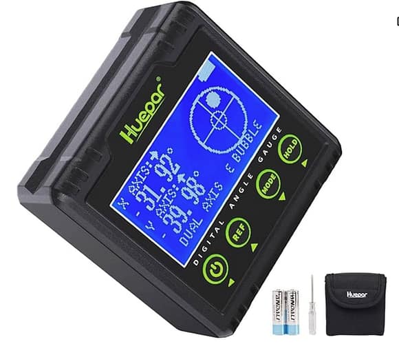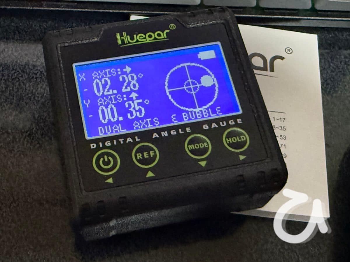 Huepar デジタル角度計 2軸 水準器、少し大きめだけどDWARF3に接触させ数値を