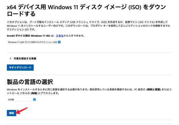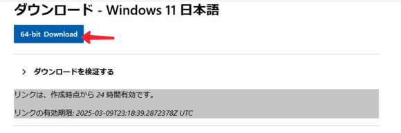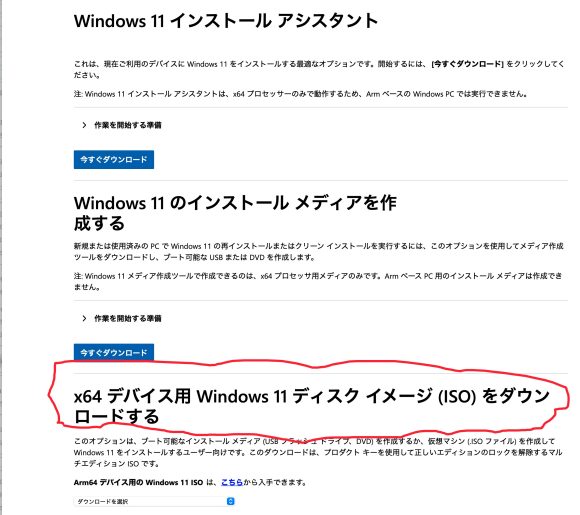 X64デバイス用Windows 11ディスクイメージ(ISO)をダウンロードするでISOファイルを